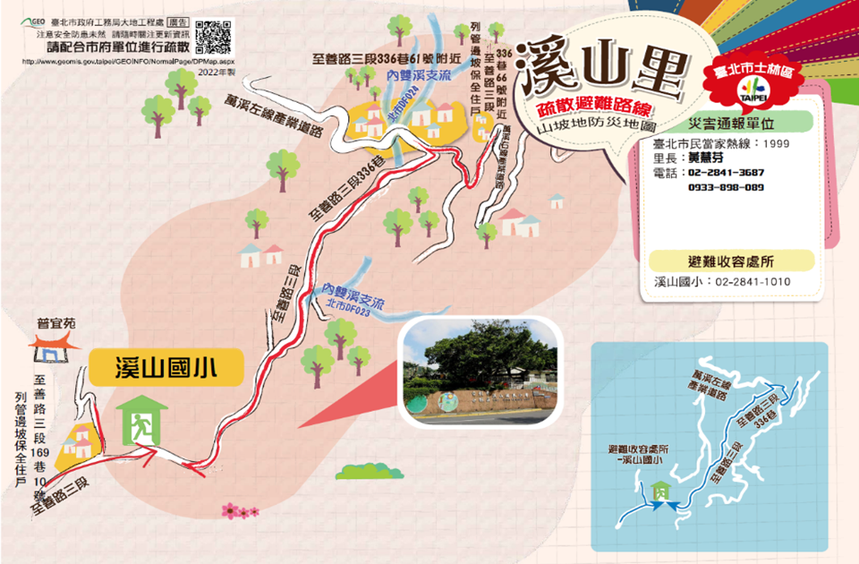 本府工務局大地工程處於每年防汛期間委託專業技師團隊辦理定期及機動巡勘觀測作業,並由工程團隊進行維護作業。