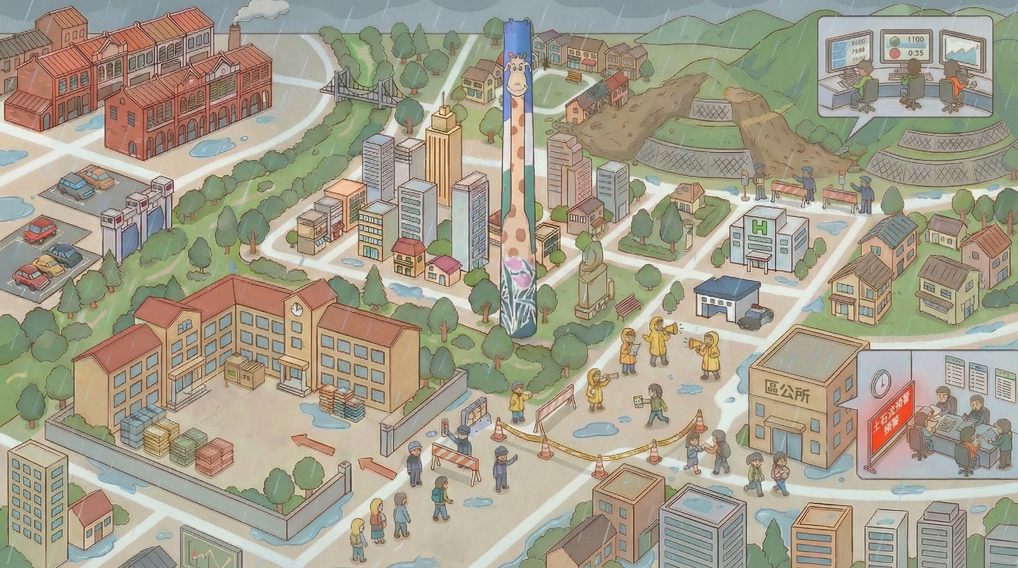 災時由區公所、里長與防災組織負責通知、集合並引導外移,確保警戒住戶安全撤離。