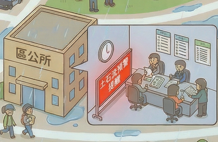土石流採中央雨量預報,老舊聚落及列管邊坡採市府警戒基準,結合標準作業流程下達疏散避難決策,提升坡地安全。